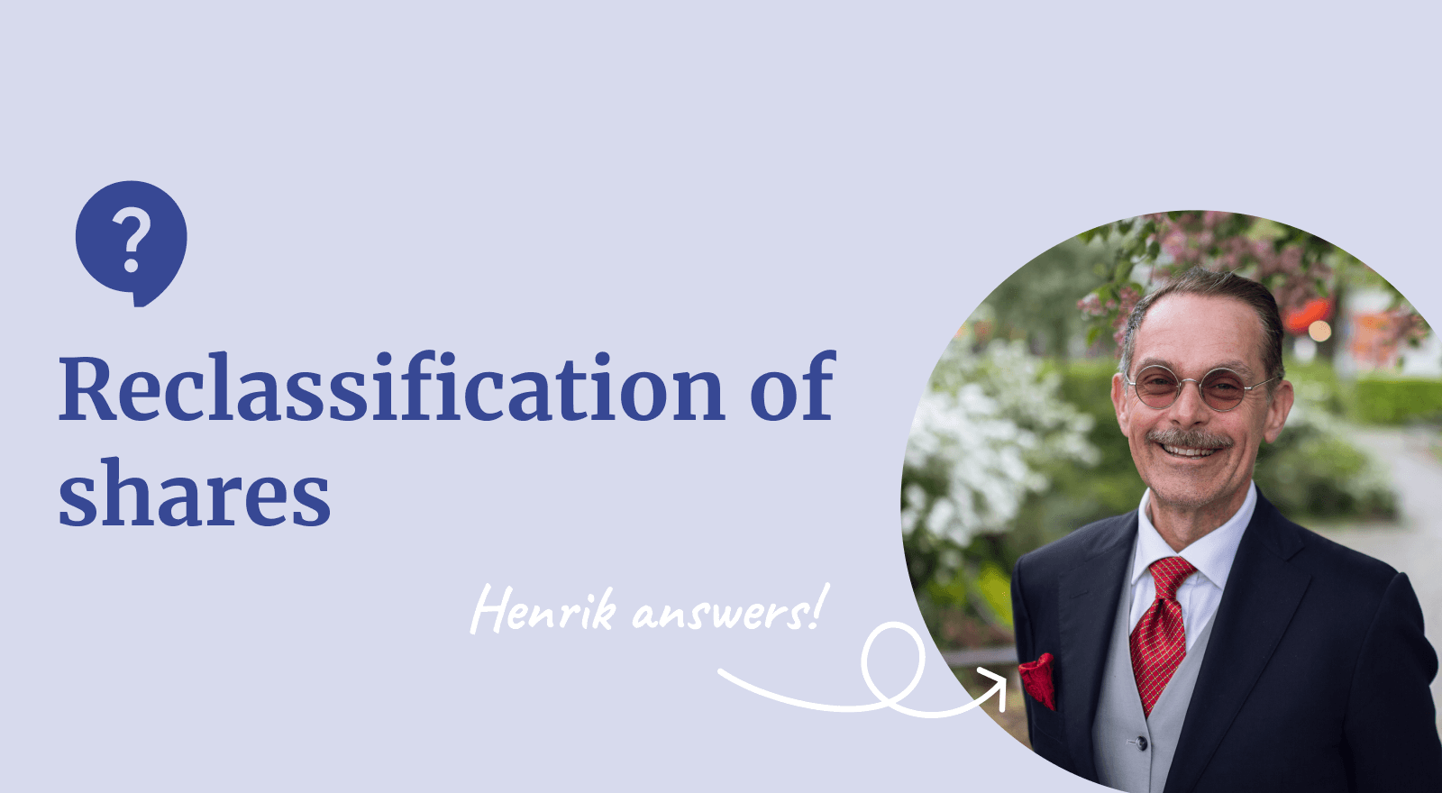 Share reclassification, or conversion of shares, means changing one class of shares into another within the same company – for example, converting an A share into a B share, or vice versa. The class you convert into may be an existing share class or a completely new one. This is a legal and administrative process governed by the company’s articles of association and the Swedish Companies Act.