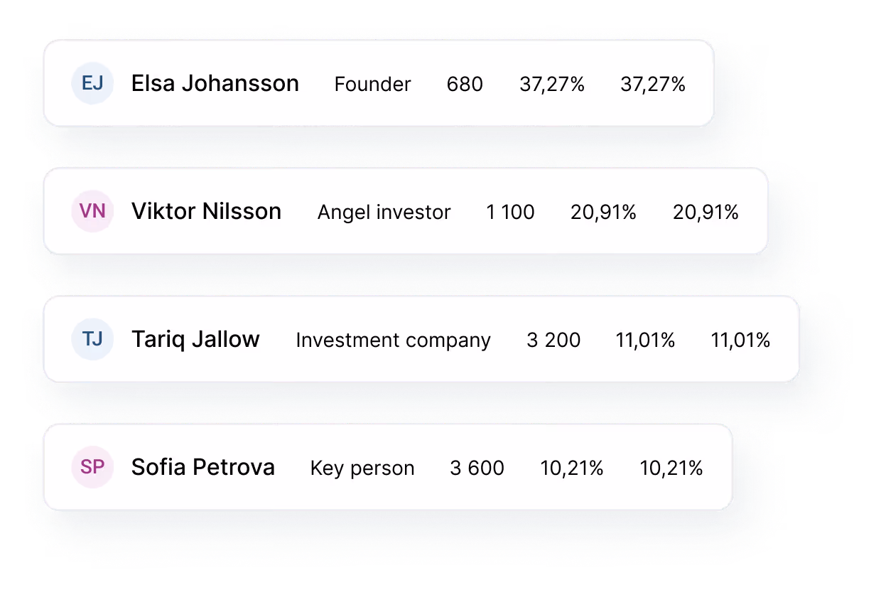 Create or update your share ledger and keep your shareholder register automatically up to date – always maintaining a clear and transparent view of the company’s ownership structure.